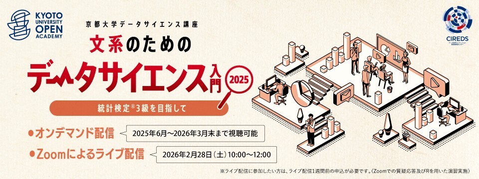 京都大学は、2022年(令和 4年)に文部科学省から、「数理・データサイエンス・ AI教育の全国展開の推進」拠点大学の一つに選定され、データ科学の教育とそれに必要な調査研究等を行ってきました。