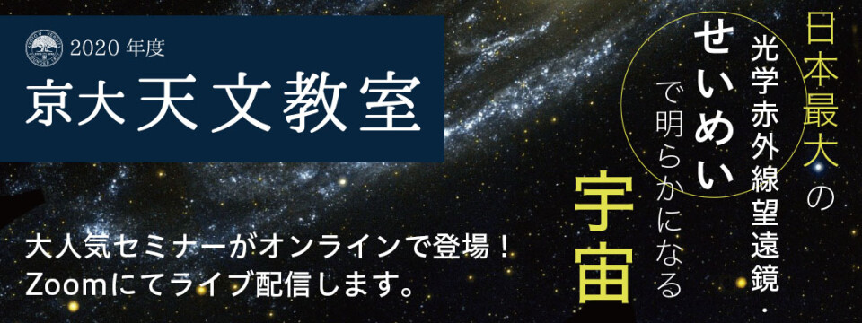 京都大学の天文学者が講師をつとめる「京大天文教室」を全5回シリーズで開催します。「日本最大の光学赤外線望遠鏡・せいめいで明らかになる宇宙」をテーマに最先端の研究成果を一般向けにわかりやすくお届けします。ライブ配信は、Zoom(ズーム/ウェブ会議室システム)を使用します。インターネットに接続できる環境があれば自宅で、外出先で、とお好きな場所で受講できるので、今まで遠方で参加が叶わなかった方もこの機会にぜひご参加ください!